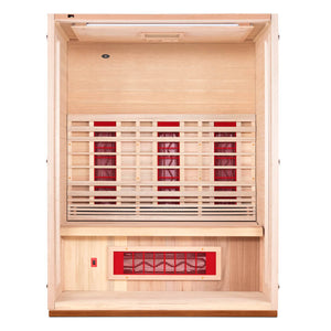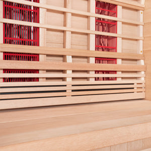 The Inspire sauna comes with full spectrum infrared heaters, covering all infrared wavelengths from near, through mid, to far infrared. By using the only Tecoloy™ Max dual-micron heaters on the market, Health Mate has raised the bar beyond therapeutic benefits, offering full-spectrum infrared heating plus an app-based control. The 8 to 12 (depending on the model) wall and bench heaters are all highest quality Tecoloy™ Max heaters, with a 96 diode near infrared led color light therapy panel in the ceiling. With the whole spectrum of infrared in your sauna, you will experience the deepest form of infrared heat in your whole body. The Tecoloy™ heaters are strategically shaped and placed so that your body is surrounded by smooth infrared heat from all sides - true 360 degree field of infrared heat, coverage second to no other sauna on the market.