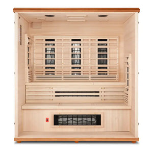 The Elevated Health sauna comes with full spectrum infrared heaters, covering all infrared wavelengths from near, through mid, to far infrared. The wall and bench heaters are all highest quality Tecoloy™ M series heaters, with near infrared led emitter in the ceiling. With the whole spectrum of infrared in your sauna, you will experience the deepest form of infrared heat in your whole body. The Tecoloy™ heaters are strategically shaped and placed so that your body is surrounded by smooth infrared heat from all sides - true 360 degree field of infrared heat!