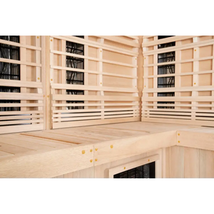 The Restore Therapy Lounge saunas come with full spectrum infrared heaters, covering all infrared wavelengths from near, through mid, to far infrared. The wall and bench heaters are all highest quality Tecoloy™ M series heaters, with near infrared led emitter in the ceiling. With the whole spectrum of infrared in your sauna, you will experience the deepest form of infrared heat in your whole body. The Tecoloy™ heaters are strategically shaped and placed so that your body is surrounded by smooth infrared heat from all sides - true 360 degree field of infrared heat!