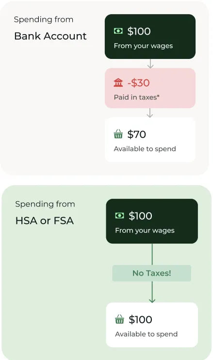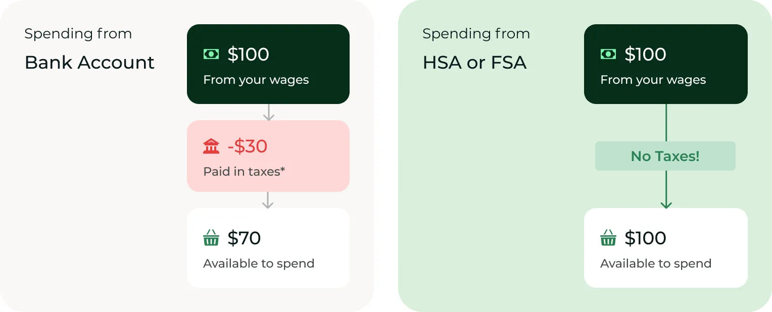 Because HSA/FSAs use pre-tax money, youâre getting more purchasing power for your dollars. Rather than pay taxes on income and then spend it on health items, qualified customers can use pre-tax funds to invest in root cause interventions.