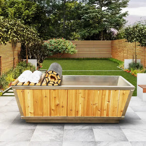 Elevate your wellness routine with the Glacier Cold Plunge Tub - a sanctuary of rejuvenation. Boasting an exterior dimension of 71"x33"x25" High, its angled sides ensure easy entry and exit, inviting you to immerse in its 190-gallon water capacity. The union of form and function is evident in the Western red cedar outer shell, designed to complement your sauna or deck, while the new and improved choices of an internally welded stainless steel or HDPE plastic interior shell guarantees durability and lasting performance.